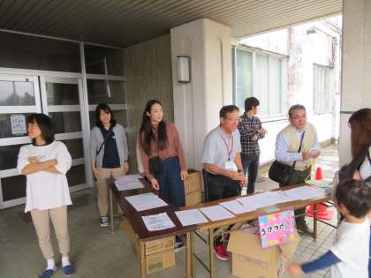 いよいよ子どもたちが待ちに待ったPTAまつりの始まりです。写真は受付の様子です。