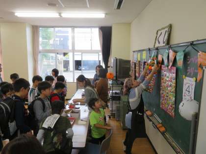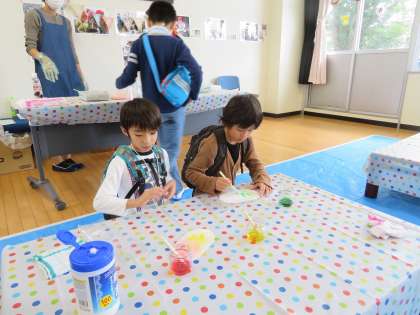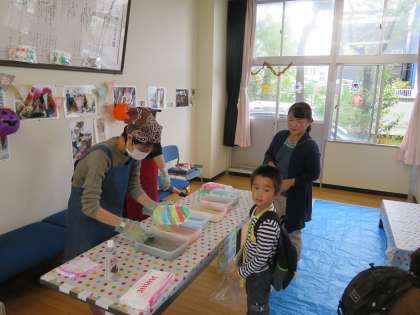 お祭りの様子です。子どもたちの笑顔がはじけています。