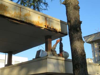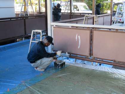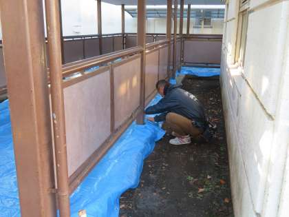 本日、沼津塗装業組合に加盟している18名の職人さんが、ボランティアとして、校舎から体育館への通路のペンキ塗りをしてくださいました。