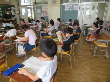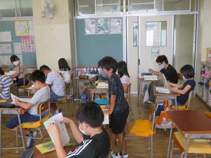 4年雪組 国語の授業風景です。「漢字の広場 四年生で学ぶ漢字」です。4年生になるになるとだいぶ難しい漢字が出てきます。音読み、訓読み、どう読むかは、文章の前後で判断をしなければなりません。参観した時には、「熱いお茶」「ビーカーを熱する」、「湯治」「首の痛みが治る」、どう読むかをみんなで確認していました。