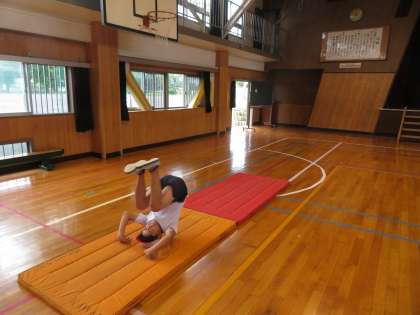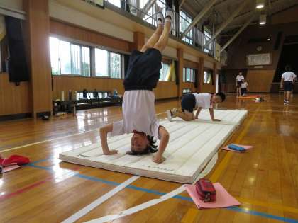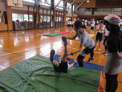 6年雪組 体育の授業風景です。「器械運動 マット運動」です。