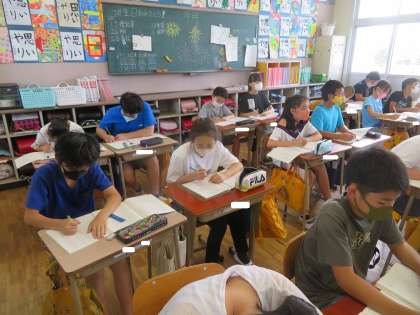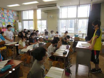 6年月組 国語の授業風景です。「きつねの窓 安房直子著」です。今日は、「僕の気持ちはいつ変わったのだろうか」という課題を考えました。参観した時には、文中から「僕」の心の様子を読み取っていました。