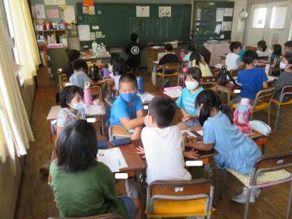 3年雪組 道徳の授業風景です。「キウイフルーツのたなの下で」です。正しいと思ったことを伝える大切さについて考えました。参観した時には、自分を主人公に置き換え、6年生にも自分だったら注意の一言が言えるか発表していました。