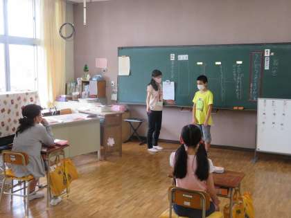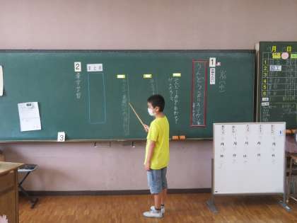 宙組 学級会活動の授業風景です。今日は、運動会のスローガンを考えました。黒板にそれぞれが考えたスローガンを書いてありました。個々の思いを、どうクラスとして一つの言葉に表すか、1年生にも分かりやすい言葉にするにはどうしたらよいか、一生懸命考えていました。