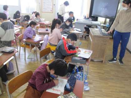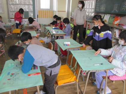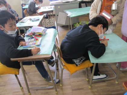 1年雪組は、感謝の手紙を書いていました。どちらの学級も心を込めて作業に取り組んでいました。