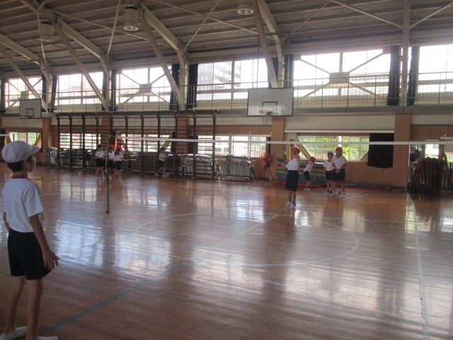 4年生は、体育で、キャッチを取り入れた「キャッチバレーボール」に挑戦していました。