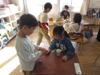 紙の教材を使い、みんなで遊べるものを工作しています。