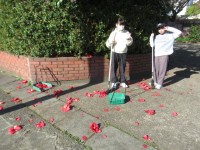 早速ボランティアさんが集まり、落ちた花びらをきれいにしてくれました。ありがとう。