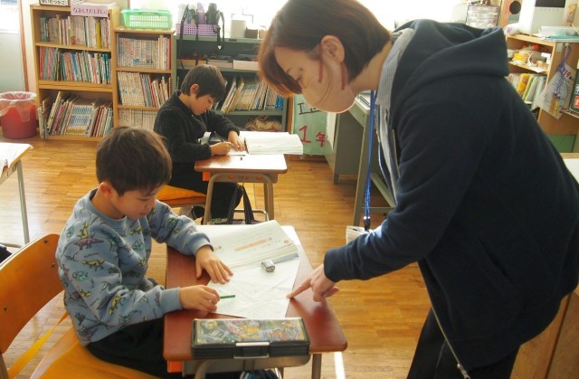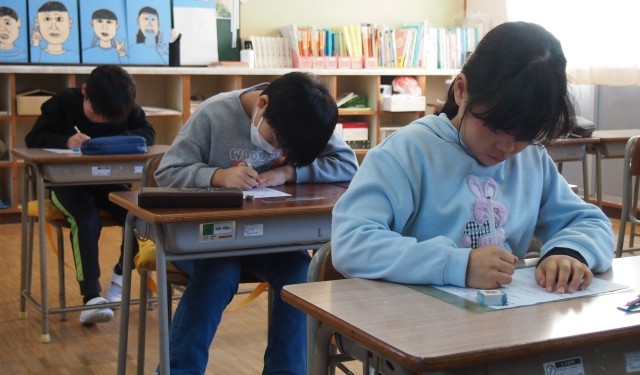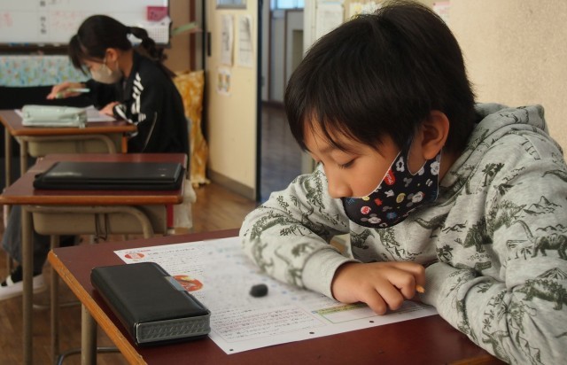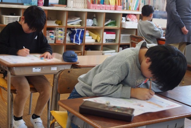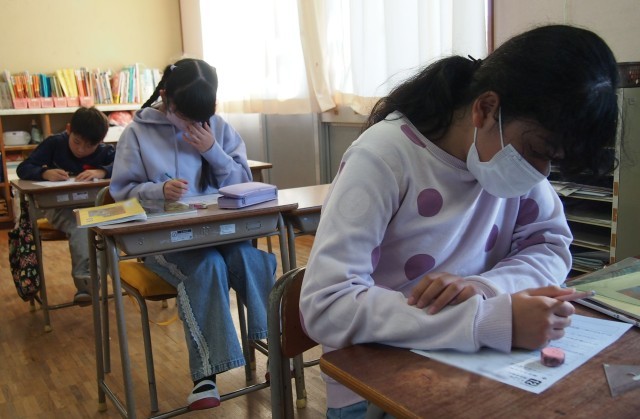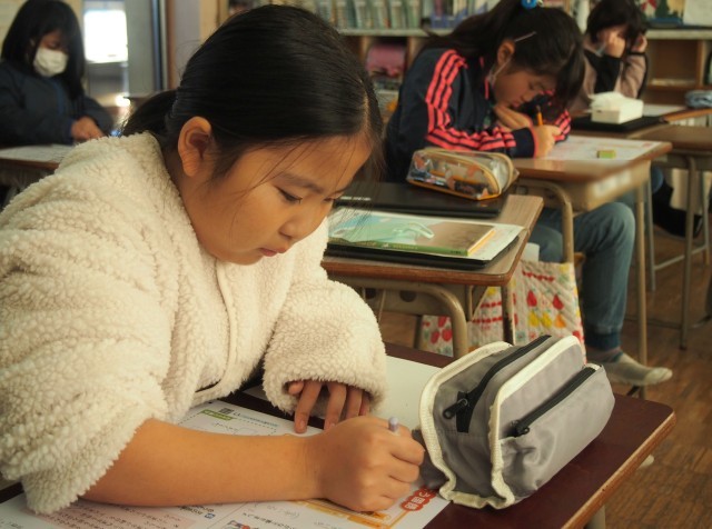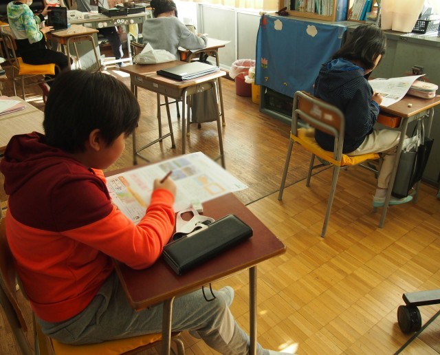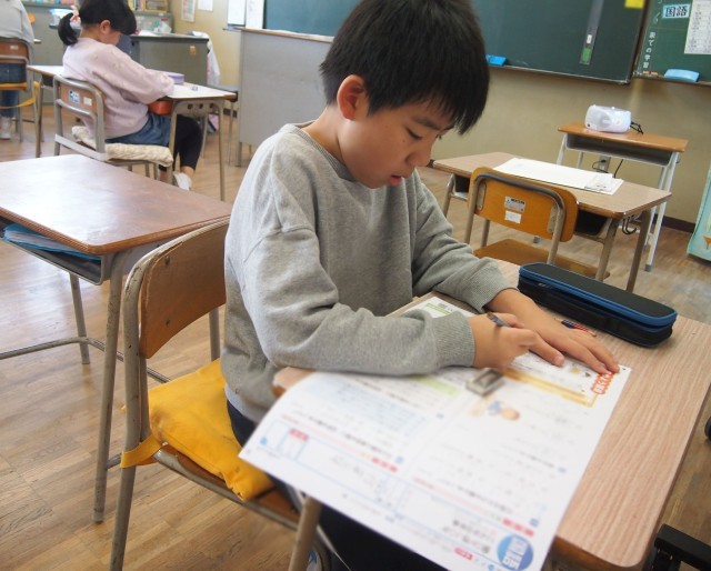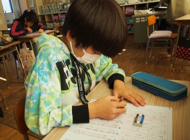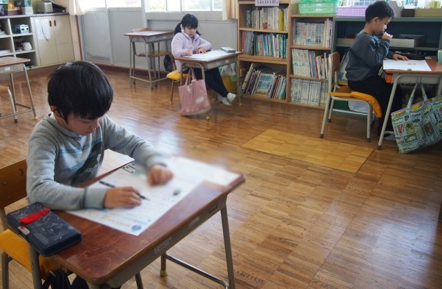 お休みをしていた子は、たまったテストに取り組んでいました。
