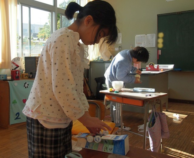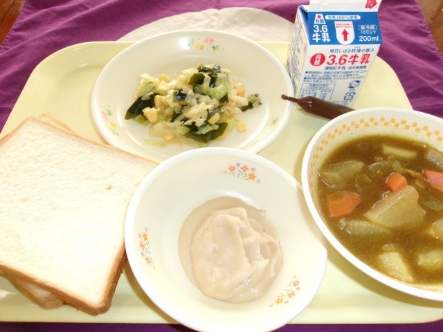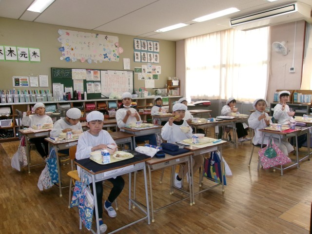 全校スイミングから帰ってきてすぐに給食です。とても慌ただしく始まりますが、今日は温かいお味噌汁に喜んでいました。