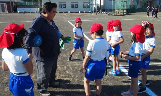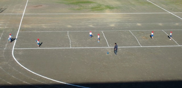 1・2年生体育の様子です。タグラグビーをしました。相手をかわしながら走ります。楽しそうに活動していました。