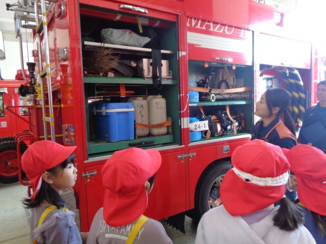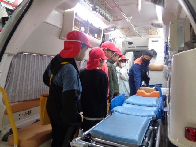 消防士さんの普段の仕事の話や消防車や救急車を実際に見て、学びを深めました。