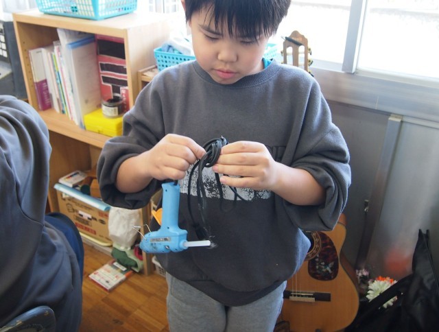 秋みつけで拾ってきたドングリや松ぼっくりを使ったおもちゃ作りが進んでいます。