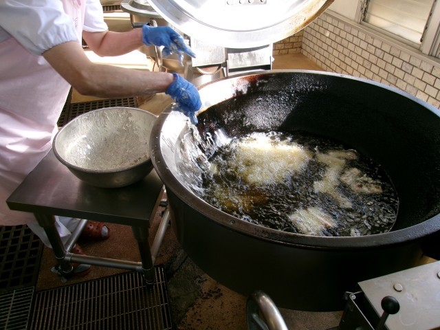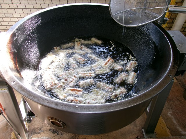 今日のちくわの香揚げは、薄力粉・塩・パセリに水を加えた衣をちくわに付けてカラッと揚げました。