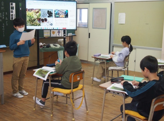 食品ロスについての自分の考えを友達に伝えるために必要な資料を探し、提示しながら発表をすることができました。