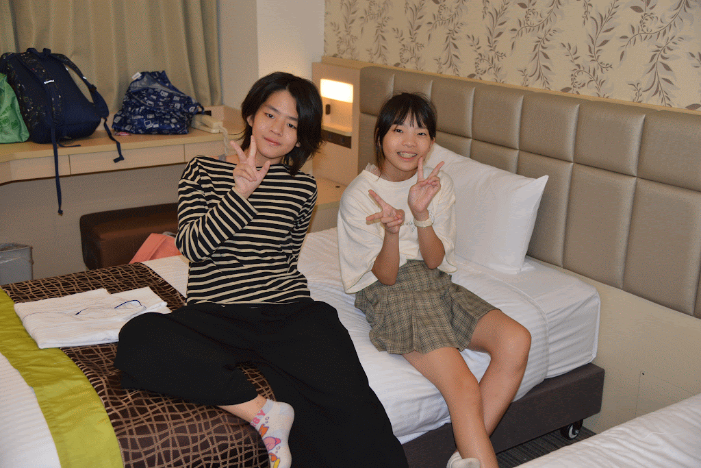 夜7時、予定より少し早くホテルに着きました。事故や怪我もなく、楽しく過ごしています。昨日、1年生からもらったお守りのおかげかもしれません。