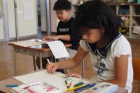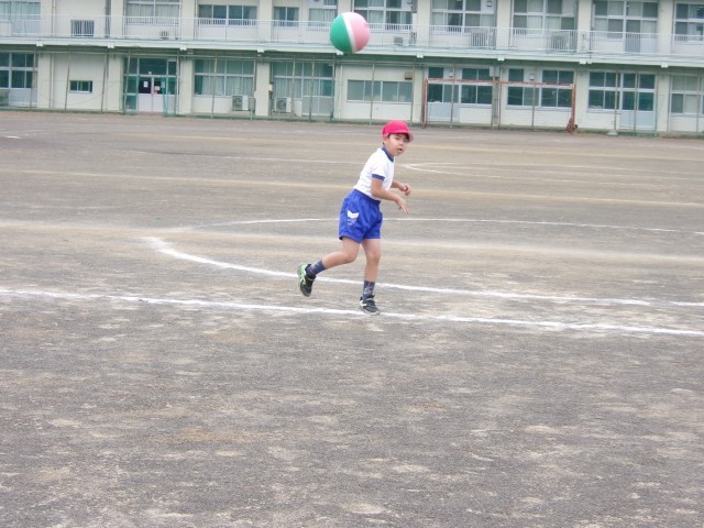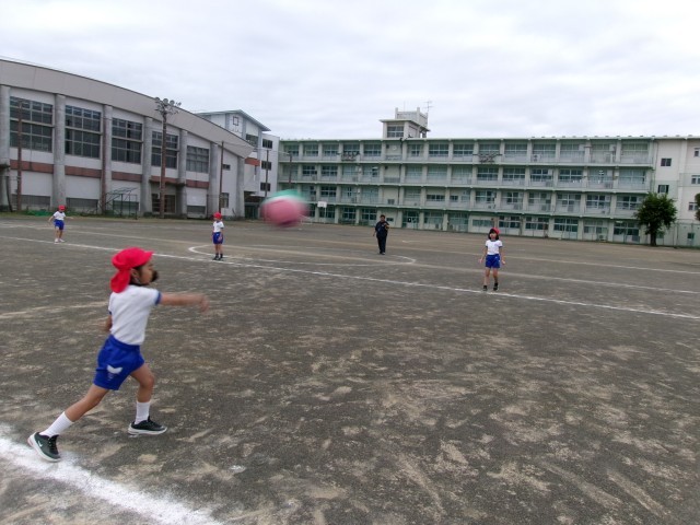 1・2年生の体育の様子です。運動場を大きく使ってボール投げをしていました。練習を重ねるごとに、投げ方が上手になりました。