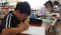3年生の理科の様子です。日なたと日かげの地面の様子を触って調べました。「あたたかさ」や「湿り気」などについてカードにまとめました。