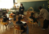 目を閉じて集中して聞いた後、どんな様子が思い浮かんだか発表し合い、みんなで物語を作り上げました。