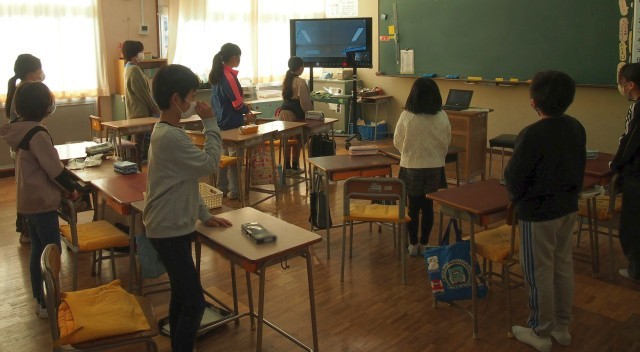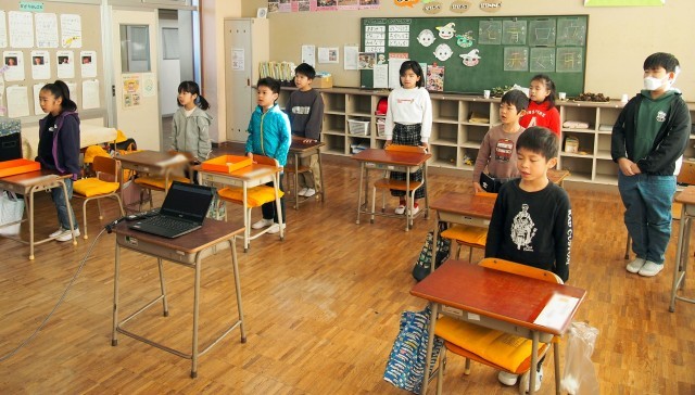 今朝は、朝会でした。1年生の教室からオンラインで実施しました。