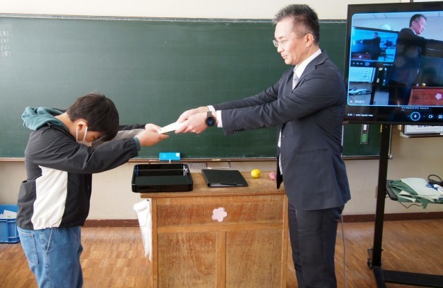 全校で校歌を歌った後、沼津文園の表彰を行いました。