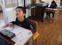 今日は、出来事についてかき出したカードを短冊状に切って、順序を整理しました。