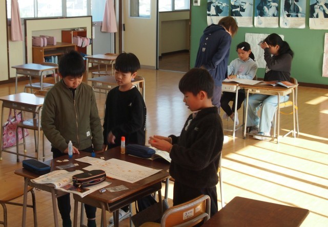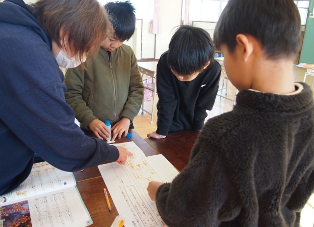 音のつなげ方や重ね方を工夫しながら、グループで打楽器を使った音楽作りをしました。