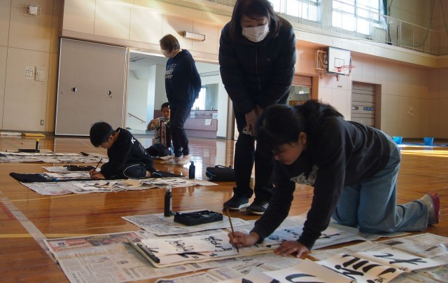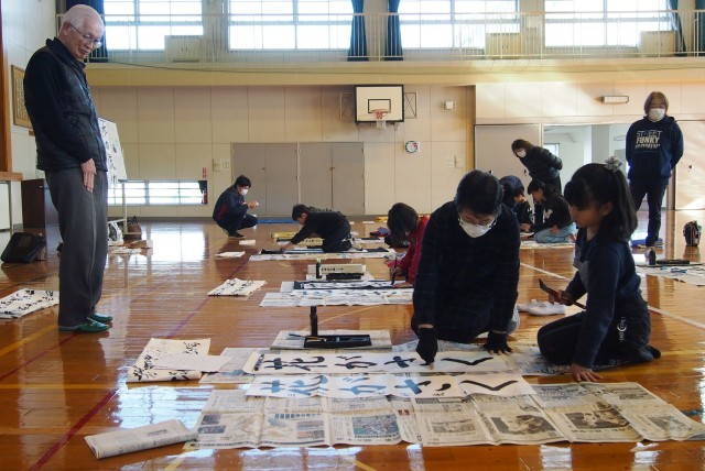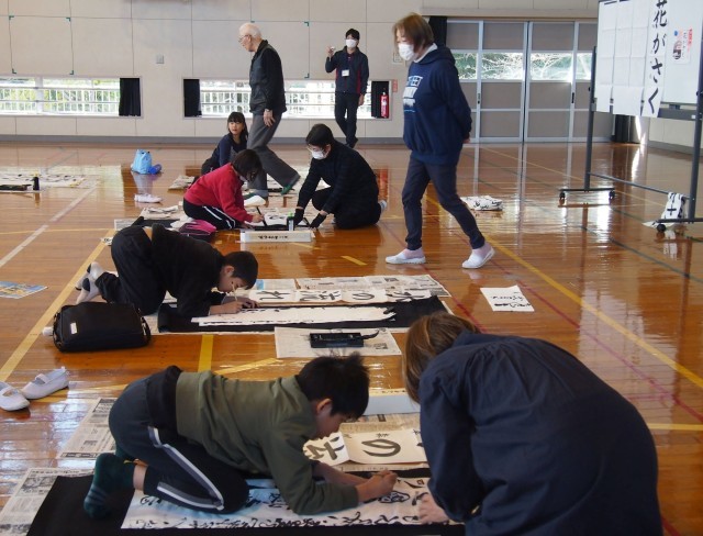3年生は「花がさく」、4年生は「水の流れ」を、心を込めて丁寧に書きました。