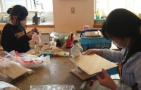 西高の書道専攻の皆さんの指導のもと、書き初めの練習をしました。