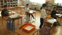 校内研修で、多くの先生が集まり、1年生の国語の授業の様子を参観して勉強をしました。