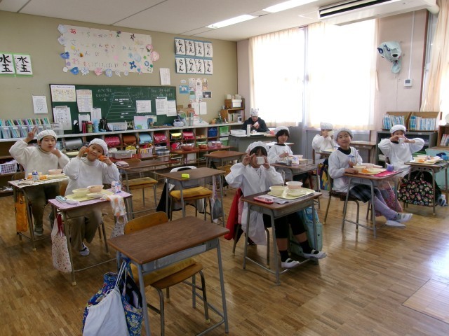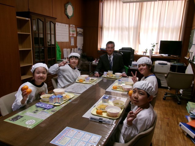 今日の校長室ランチタイムは4年生第二弾でした。校長室の隠れた秘密(洗面台)があることを知りました。