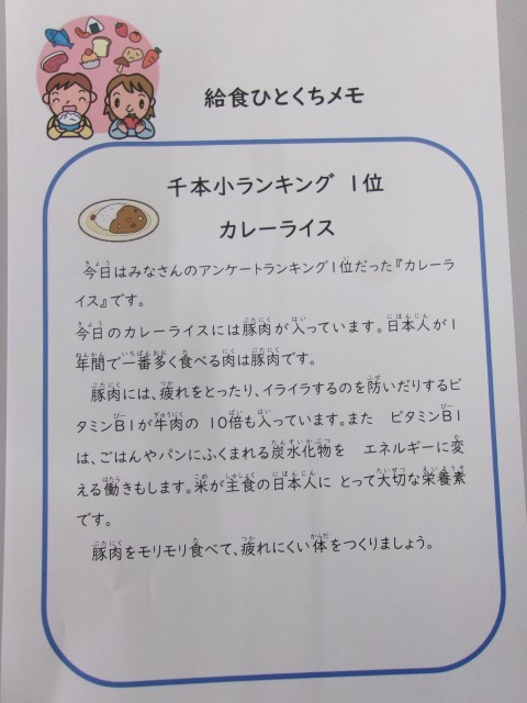 千本小の給食も残りわずかとなってきました。