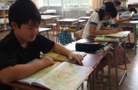 持久走です。ペアになって、走った周数を応援しながら確かめていました。記録が上がる子もいれば変わらない子もいますが、日々、続けることだ大事ですね。