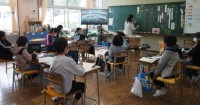 高学年の新学期はじめの身体測定です。身長や体重の記録をみて、自分の体の成長を喜んでいる子供たちでした。