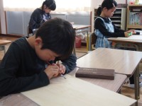 4年生は、木版画に取り組んでいました。動画を見て彫り方を確認し、作業をしていました。描いた線は彫らずに、周りを彫っていきます。真剣に取り組む子供たちでした。