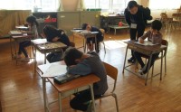 天気が良く、気持ちの良い日だったので、1年生と2年生は、外でお弁当を食べました。