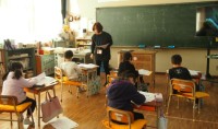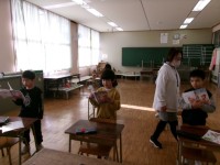 4/121年生の授業は、国語でした。「あ」「い」「う」「え」「お」の文字や発音について学習していました。黒板に実物提示装置を使って、教科書を写しだし、学習を進めていました。日常のどんなときに「あ」を使うか、想像しながら何回も繰り返して声に出し練習していました。母音の口の形に気をつけて、発音すると聞き取りやすい発音ができるようになります。そのことを意識し、繰り返し練習すると良いです。