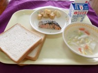今日の給食は、さつまいもご飯、さんまの煮付け、白玉団子汁、牛乳でした。さんまは骨まで柔らかくて、おいしくいただきました。栄養士の先生が、教室を回って、子供たちに今日の献立について説明していました。ごちそうさまでした。