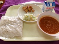 今日の給食は、山型食パン、ミートグラタン、海草サラダ、牛乳でした。ミートグラタンは、お肉とチーズの味が絶妙です。海草サラダもさっぱりしていました。ごちそうさまでした。