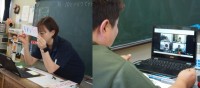 Chromebookを活用して、漢字の学習を行っていました。先生が黒板に書いた漢字を見ながら、漢字ドリルで練習していました。先生に自分がかいた文字を見せている子もいます。