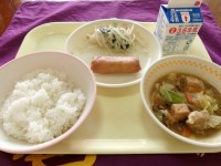 今日は、2学期最後の給食でした。メニューは、自校炊飯、かれいの竜田揚げ、かぼちゃの煮物、里芋と豆腐の味噌汁、クリスマスデザート、牛乳でした。冬至献立のかぼちゃは甘くて、たくさん食べてしまいました。デザートも美味しくいただきました。ごちそうさまでした。