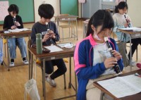 今日は、デジタル教科書に書き込みながら学習を進めています。考えるヒントとなるメモも、しっかりタッチペンで書きこんで解いていました。友達の考えもすぐに大型画面に提示され、自分の考えと比べることもできました。