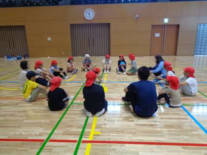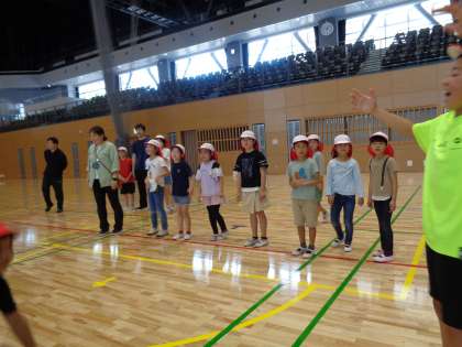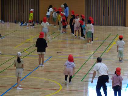 その後は「バナナ鬼」を楽しみ、縦割り班遊びに移りました。6年生が下級生を楽しませようと計画した遊びばかりです。手つなぎ鬼、ドッジボール、だるまさんが転んだ、ラインじゃんけん・・・どれも1年生にも分かるようなルールとなっていて、6年生の準備はバッチリでした。