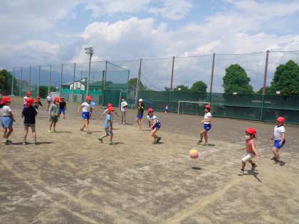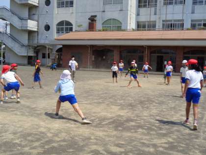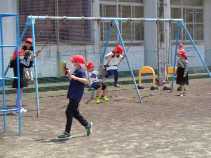 ドッジボール、鬼ごっこ、ブランコ乗り、だるまさんが転んだ、全校の子どもたちが大好きな遊びに夢中です。