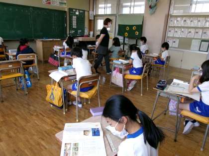 3年生の国語では、説明文の中から「問い」をみつけていました。真剣に問いをさがす子供たち。文章の構成に着目して読むことを学習することで、これから読書をしたときに、気付くことが増えそうです。