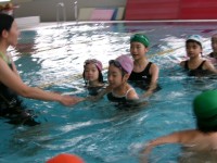 1・2年生は、今日がプール開き。朝からこの時間を楽しみにしていました。シャワーを浴びて、足から少しずつプールに入ります。大きなプールで伸び伸びと活動して、楽しそうな子供たちでした。