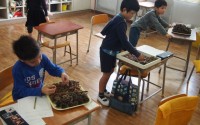 毎日毎日、あさがおさんは元気に咲いています。今日は、咲き終わった花を使って、塗り絵や色水づくりを楽しみました。家の人へのプレゼント用のしおりも作りました。