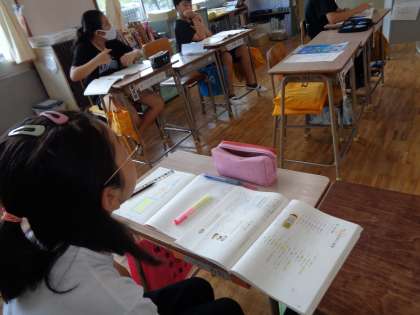 文末表現について学習しています。事実や疑問、否定、命令、呼びかけなど、文末表現によって様々な意味となることを改めて確認していました。また、声の調子や抑揚でも意味が変わってくることも、実践しながら確かめていました。