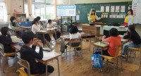 5年生は6年生の教室へ行き、国語の授業を参観中。どのようにして、学んでいるのか見学です。