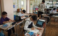 6年生の図工は、前回作った骨組みに紙粘土をつけていました。